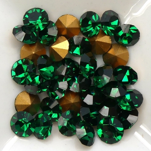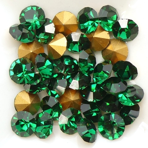 SS29-MCC-50730-98521 Emerald Gold Foiled Chaton 6 mm. 12 Pc.